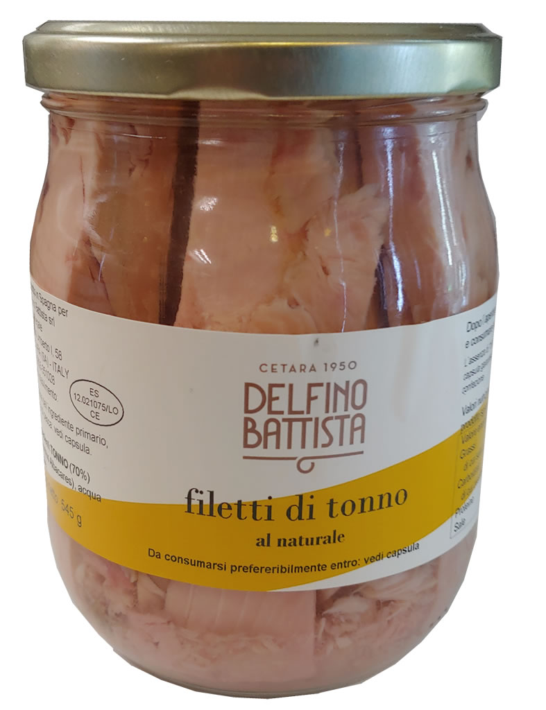 Filetti di tonno in olio d’oliva: il tonno viene tagliato in filetti e confezionato con la sola aggiunta di olio di oliva. I nostri